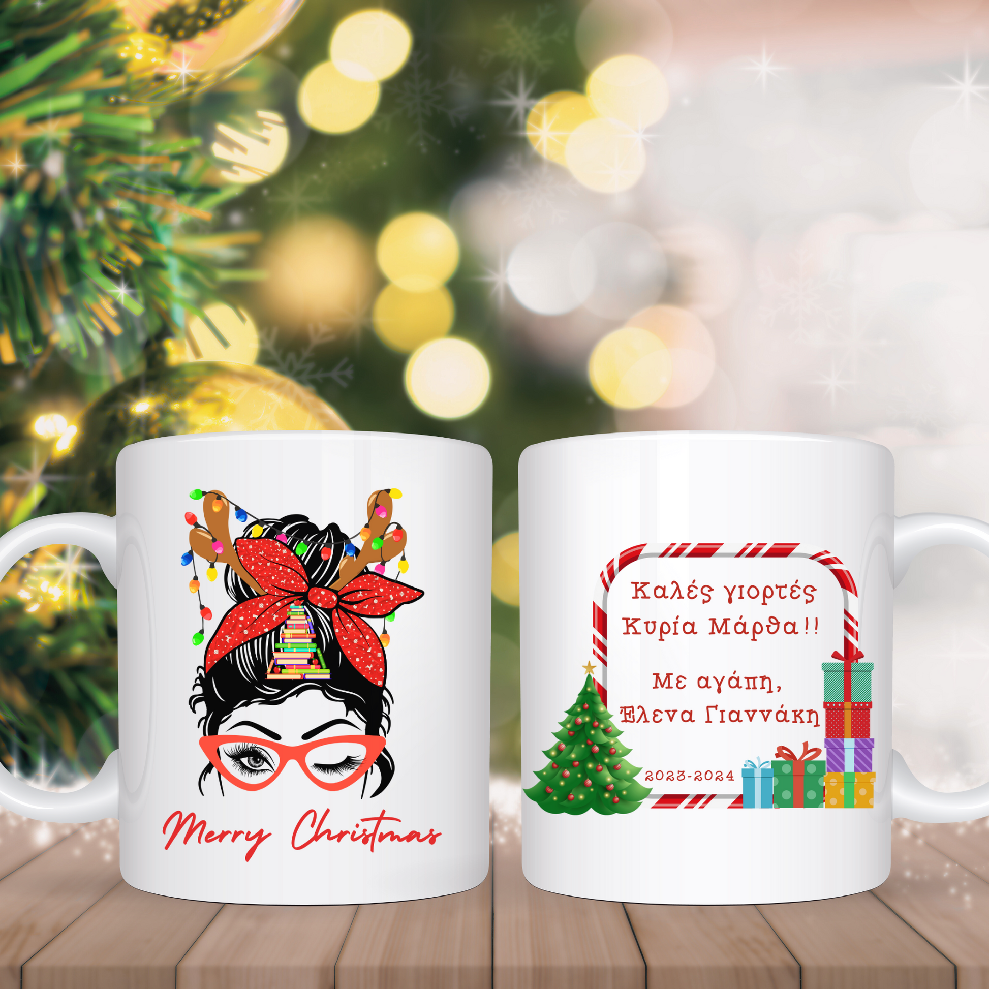 Πορσελάνινη κούπα 325ml προσωποποιημένη, με χριστουγεννιάτικο σχέδιο, για δασκάλους. Ένα μοναδικό ενθύμιο για να εκφράσουμε την εκτίμησή μας στους δασκάλους των παιδιών μας.