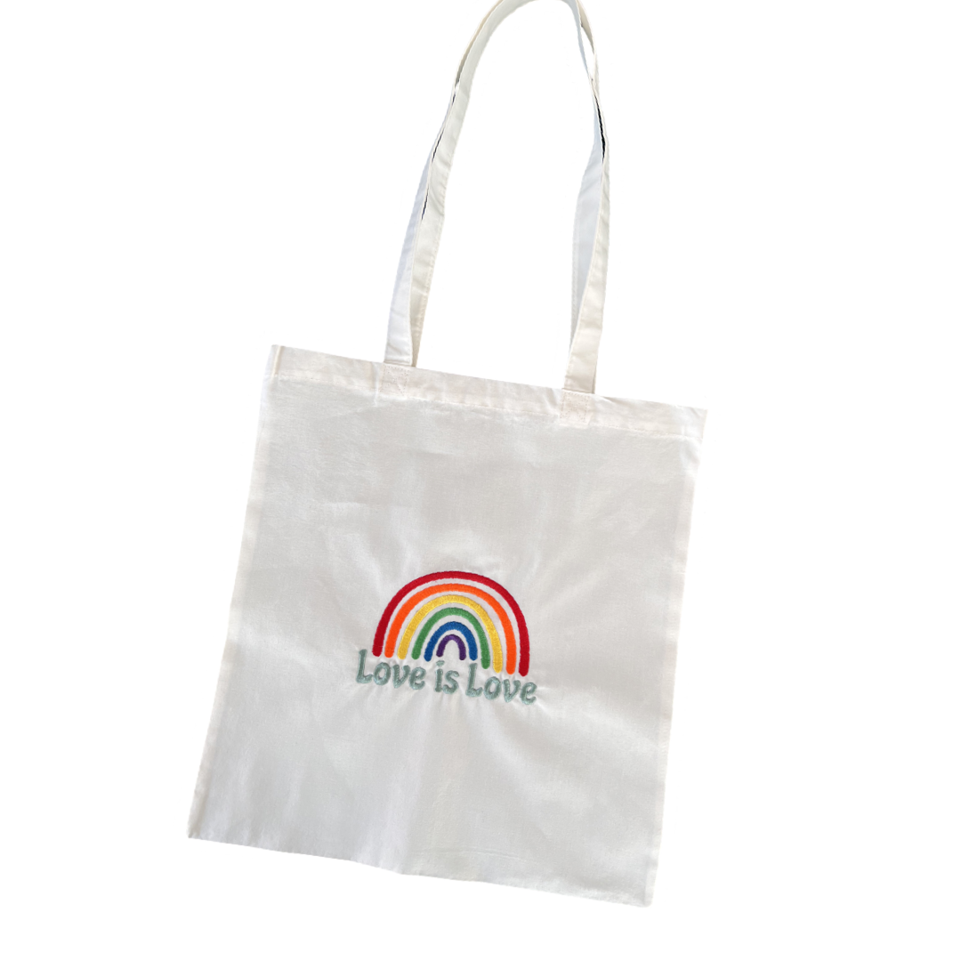 Τσάντα αγορών πάνινη με κέντημα love is love